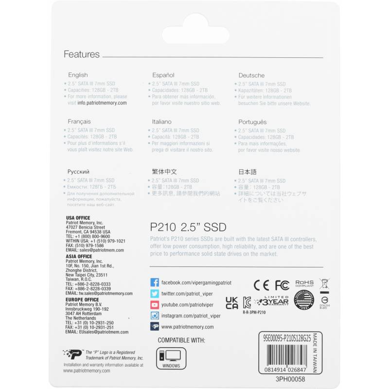 Накопитель SSD Patriot SATA-III 128GB P210S128G25 P210 2.5"