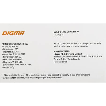 Накопитель SSD Digma SATA-III 256GB DGSR2256GP13T Run P1 2.5"