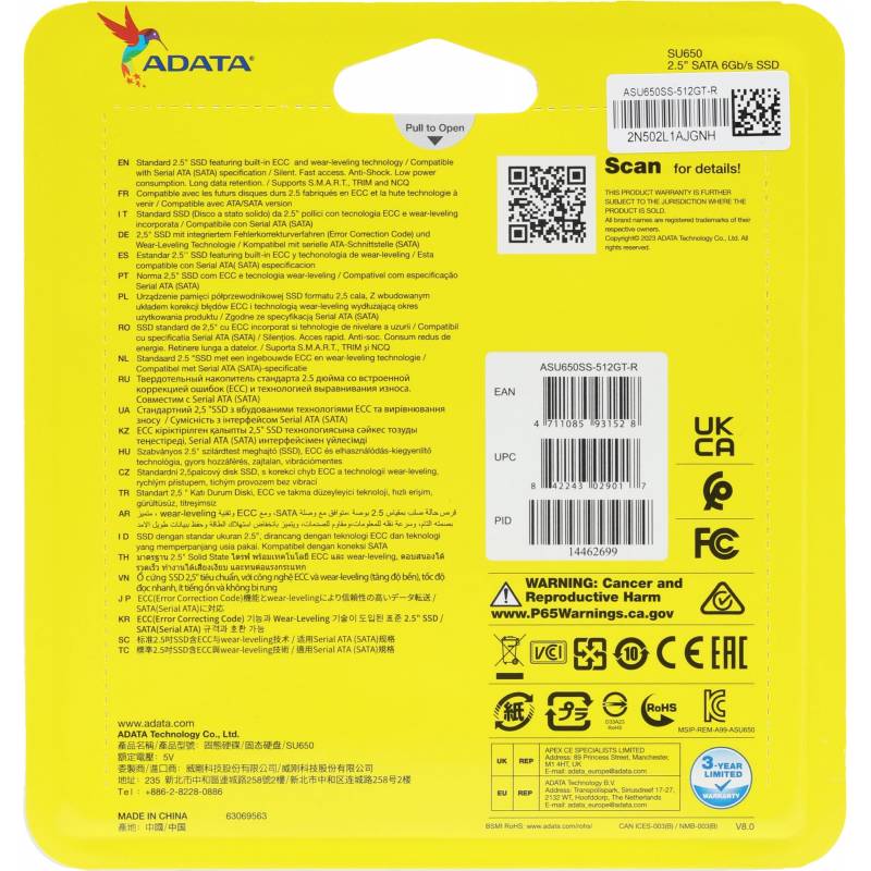 Накопитель SSD A-Data SATA-III 512GB ASU650SS-512GT-R Ultimate SU650 2.5"