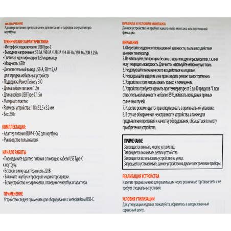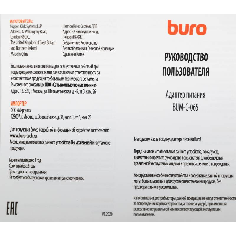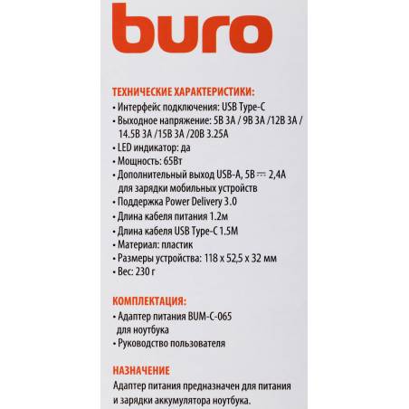 Блок питания Buro BUM-C-065 автоматический 65W 5V-20V 3A