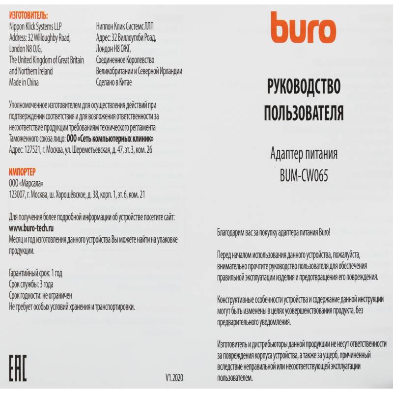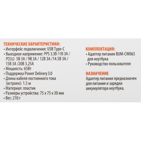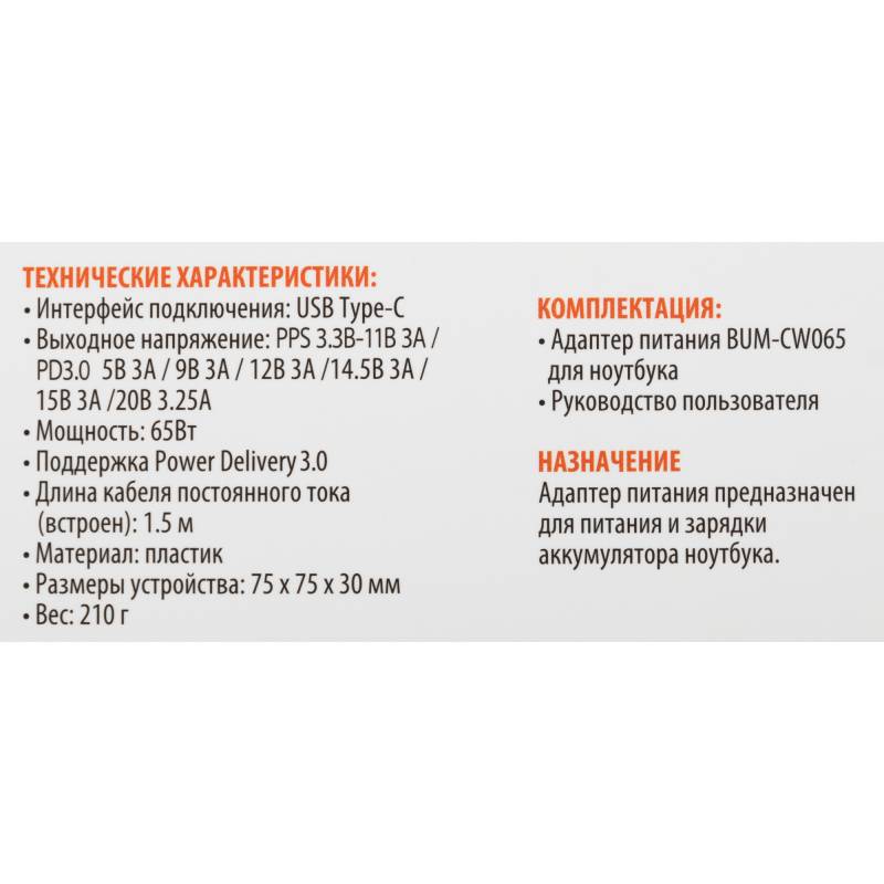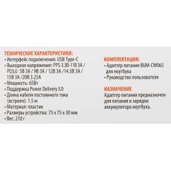 Блок питания Buro BUM-CW065 автоматический 65W 5V-20V 3.25A от бытовой электросети