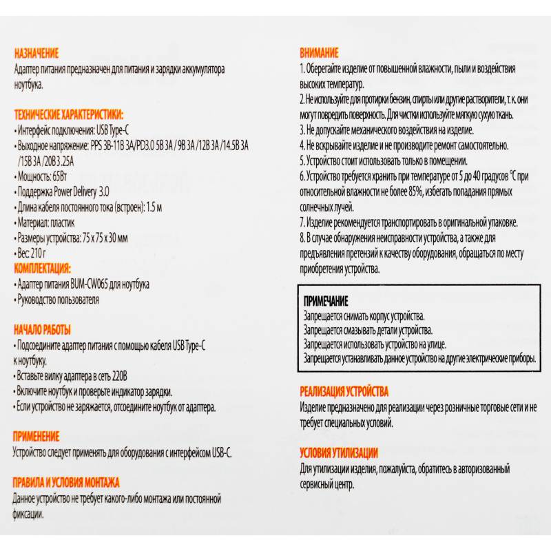 - Адаптер питания универсальный с разъемом USB Type-C и поддержкой PD 3.0