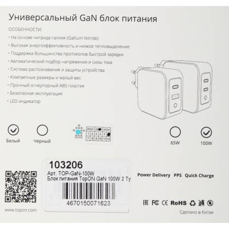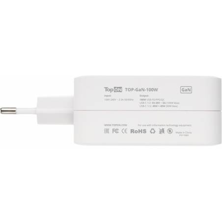 Блок питания TopON TOP-GaN-100W автоматический 100W 5V-20V 5A 2xUSB от бытовой электросети LED индикатор