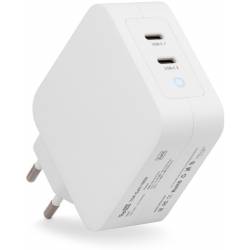 - Зарядный кабель продаётся отдельно. 2 универсальных USB-C, LED индикатор. На основе нитрида галлия (Gallium Nitride, GaN). Высокая энергоэффективность, низкое тепловыделение, автоматический подбор напряжения и силы тока. Поддержка Power Delivery 3.1, PPS