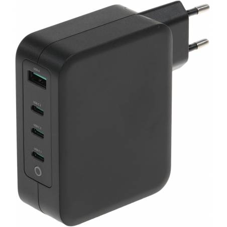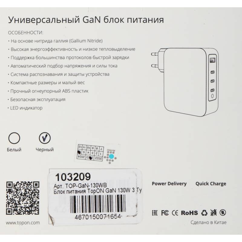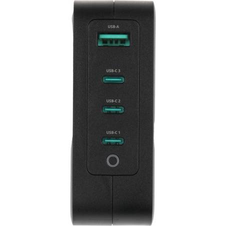 - Зарядный кабель продаётся отдельно. 3 универсальных USB-C и USB-A, LED индикатор. На основе нитрида галлия (Gallium Nitride, GaN). Высокая энергоэффективность, низкое тепловыделение, автоматический подбор напряжения и силы тока. Поддержка Power Delivery 3