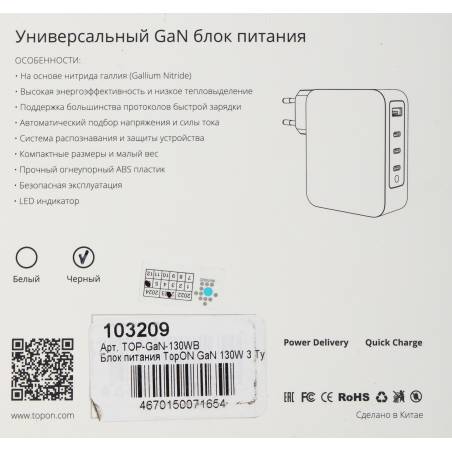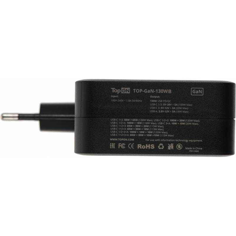 Блок питания TopON TOP-GaN-130WB автоматический 130W 5V-20V 5A 4xUSB от бытовой электросети LED индикатор