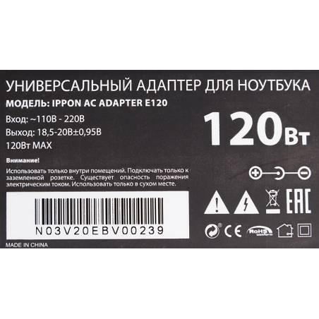 Блок питания Ippon E120 автоматический 120W 18.5V-20V 11-connectors 6.0A от бытовой электросети LED индикатор
