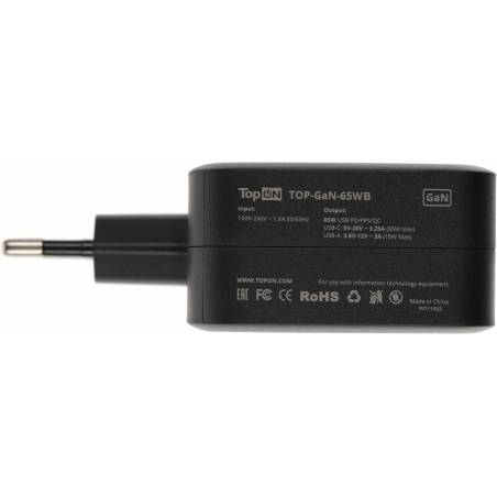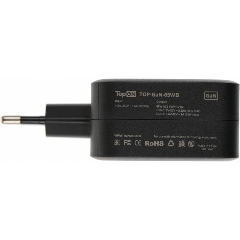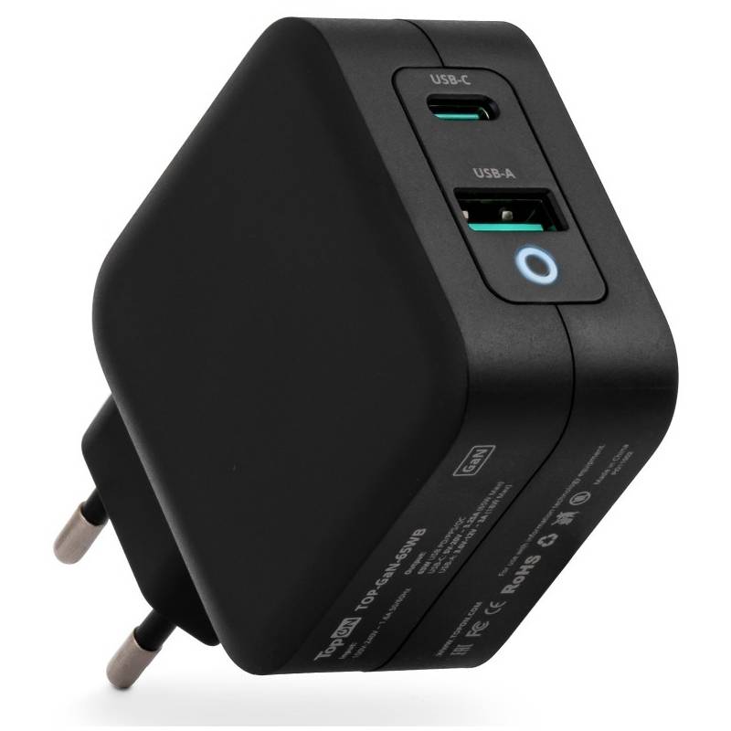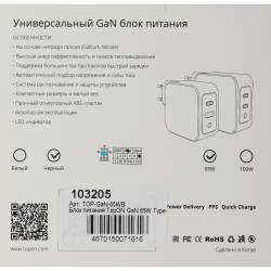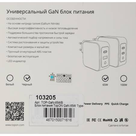 Блок питания TopON TOP-GaN-65WB автоматический 65W 5V-20V 3.25A 2xUSB от бытовой электросети LED индикатор