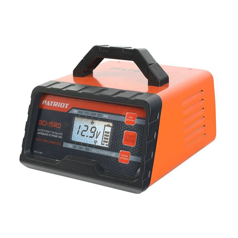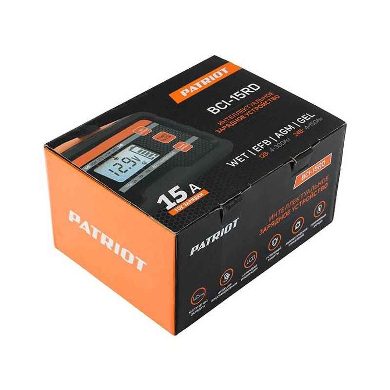 - Зарядное устройство PATRIOT BCI-15RD 650301915 представляет собой многофункциональный аппарат, который можно использовать для аккумуляторов на грузовых автомобилях и тракторах, а также снегоходах и мотоциклах. Устройство позволяет быстро зарядить аккумуля