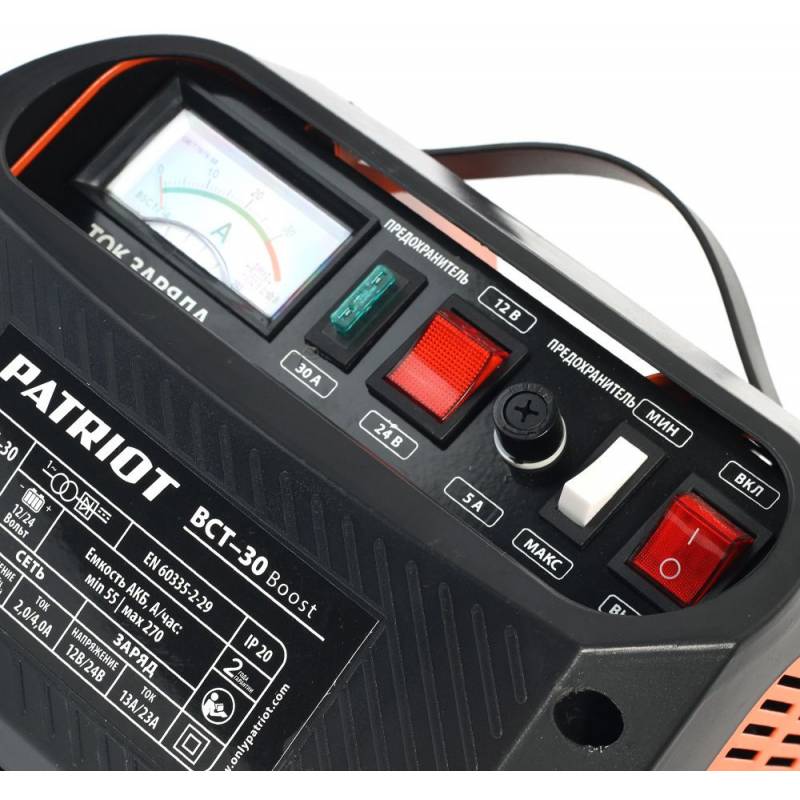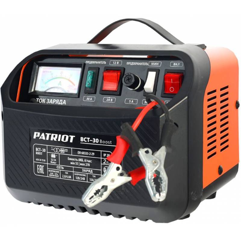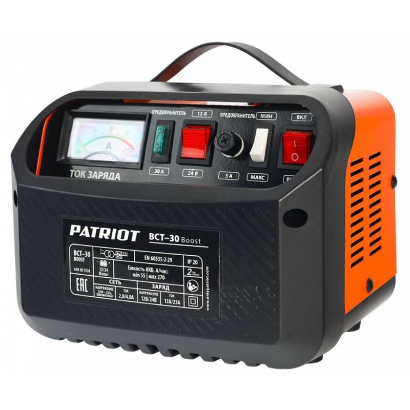 - Заряднопредпусковое устройство PATRIOT BCT-30 Boost 650301530 применяется в сервисах или непосредственно владельцем автомобиля. Небольшие габариты и вес позволяют держать аппарат в машине. Изделие предназначено для работы со свинцовыми или кислотными акку