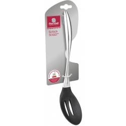 - Преимущества: анатомическая форма рукоятки. Использование: не подходит для посудомоечной машины. Материал рабочей поверхности: силикон. Материал ручки: нержавеющая сталь 18/0. Максимальная температура нагрева: 230 С.