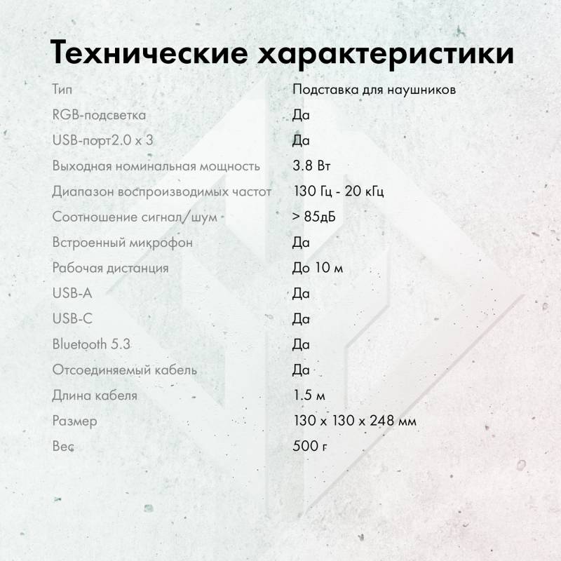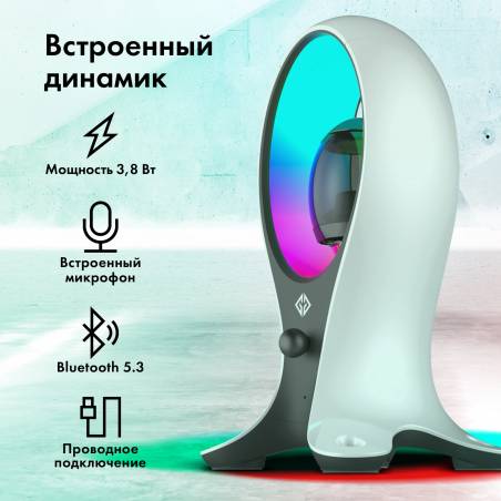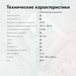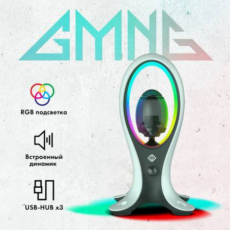 - Подставка для гарнитуры с динамической RGB подсветкой, встроенным динамиком для воспроизведения аудио, с поддержкой режима HUB'а. Поддержка BlueTooth.