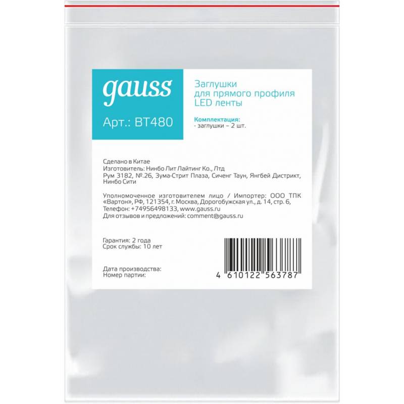 Заглушка Gauss Basic для лен.светод. (BT480)