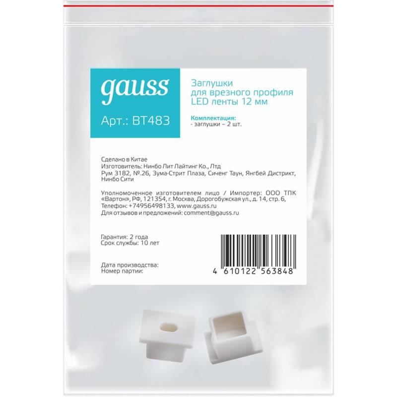 Заглушка Gauss Basic для лен.светод. белый (BT483)