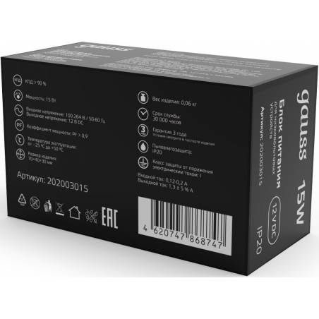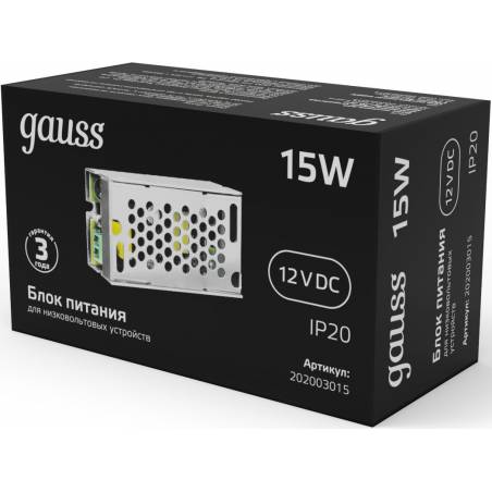Блок питания Gauss 202003015 встраив. для лен.светод. черный