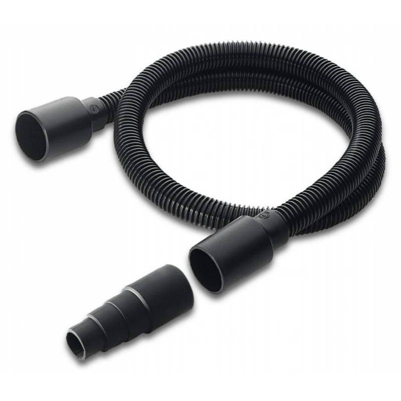 - Набор состоит из тонкого и эластичного специального шланга (1 м) и адаптера для присоединения электроинструментов к хозяйственному пылесосу, оснащенному штепсельной розеткой. Позволяет немедленно собирать образующиеся при работе пыль, опилки или стружку.