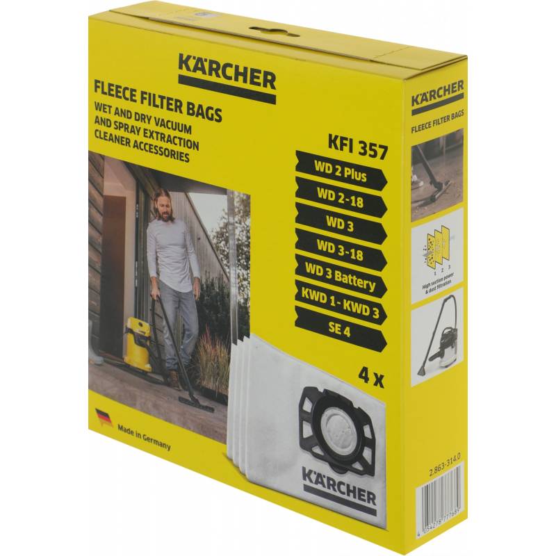 - Особо прочные на разрыв фильтр-мешки из нетканого материала были разработаны специально для применения в хозяйственных пылесосах Karcher WD 2 Plus, WD 3, WD 3 Battery и KWD 1 – KWD 3, а также в моющих пылесосах SE 4001 / SE 4002.