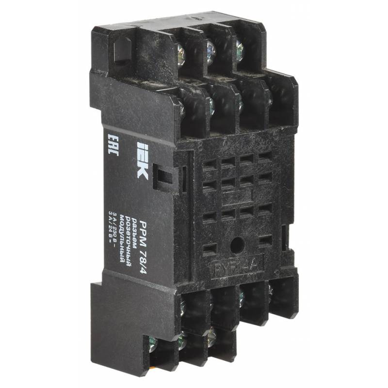 - Разъёмы розеточные модульные РРМ77, РРМ78 IEK предназначены для применения в цепях переменного тока 230В 50Гц и постоянного тока 24В (ГОСТ 30011.5.1), являются комплектующими для реле промежуточных серий РЭК77 и РЭК78. На разъёмах расположены зажимы вывод