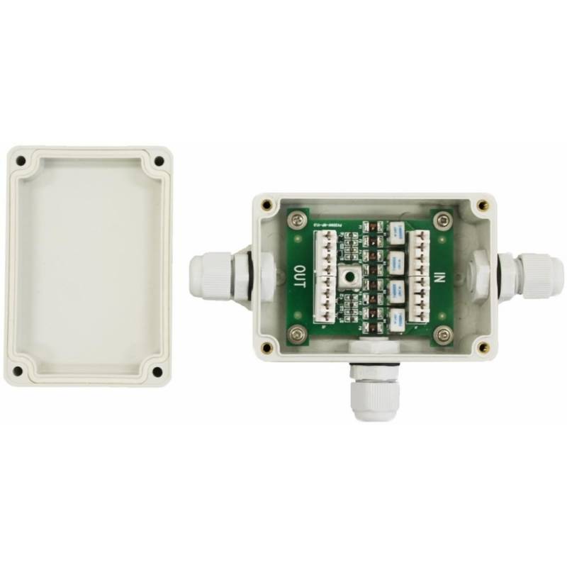 - Уличное устройство грозозащиты для локальной вычислительной сети (скорость до 1000 Мб/с) с защитой линий PoE (af/at, методы A + B, контакты 1/2, 3/6, 4/5, 7/8).