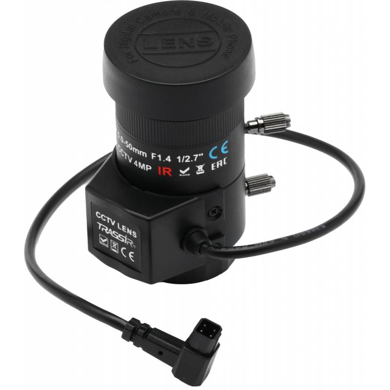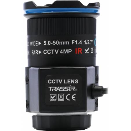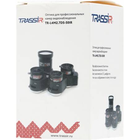 - Вариофокальный объектив TRASSIR TR-L4M2.7D5-50IR с фокусным расстоянием 5–50 мм, апертурой F/2.0, ИК-коррекцией предназначен для аналоговых и IP-камер видеонаблюдения с разрешением до 4 Мп (2688?1520), базирующихся на матрице 1/2.7", 1/3", 1/4".
