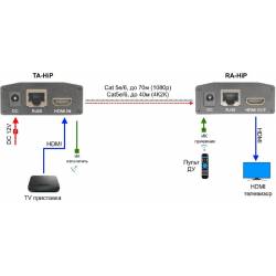 - Комплект для передачи HDMI, ИК управления и питания по кабелю витой пары (HDBaseT). Расстояние передачи до 40м (4K2K(30Гц)), до 70м (1080p). Поддержка технологии Power over HDBaseT(PoH). Поддержка HDMI 1.4 и HDCP 1.2.