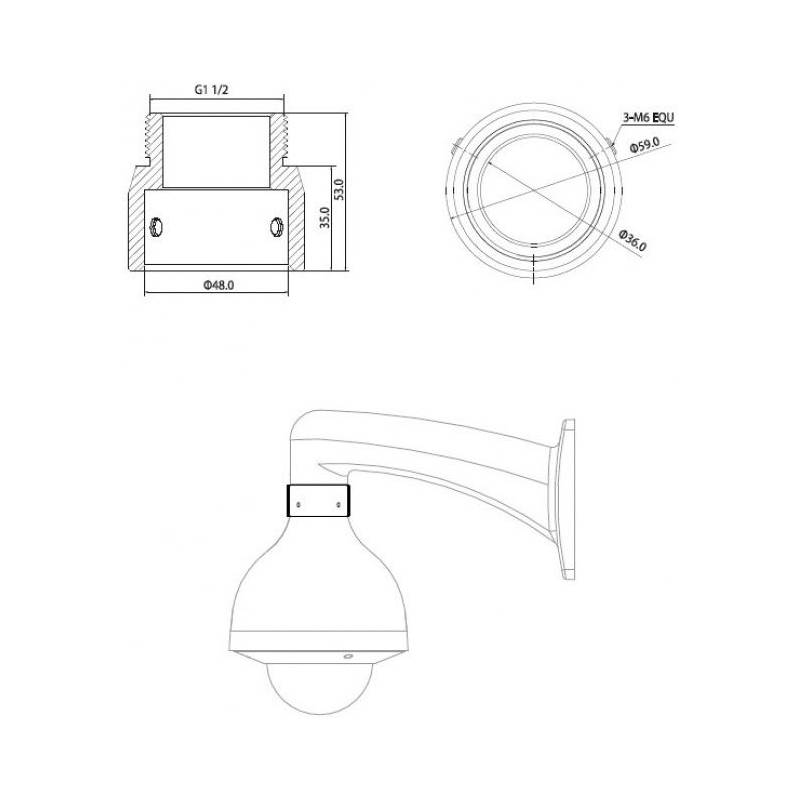 - Для установки PTZ камер. Резьба: G1 1/2"