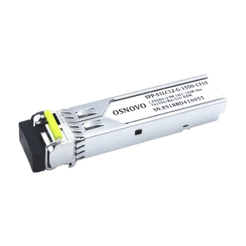 - SFP модуль Osnovo предназначен для подключения к коммутаторам оптоволоконного кабеля, передает данные в оптическом диапазоне со скоростью до 1.25 Гбит/с по одномодовому оптоволоконному кабелю (1 волокно, 9/125 мкм) на расстояние до 3 км.