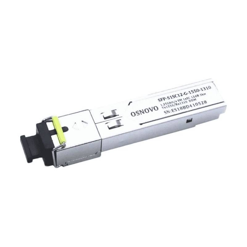 - Оптический SFP-модуль Osnovo SFP-S1SC12-G-1550-1310 передает данные по одному волокну одномодового оптоволоконного кабеля (9/125 мкм) со скоростью до 1.25 Гбит/с на расстояние до 3 км.