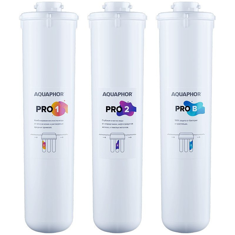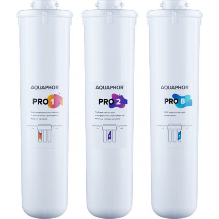 - Комбинация трех сменных модулей Pro 1, Pro 2 и Pro B обеспечивает четырехступенчатую фильтрацию водопроводной воды. Модули этой комбинации эффективны для тщательной фильтрации мутной воды, а также воды с повышенным содержанием железа, включая Fe2+ и Fe3+.