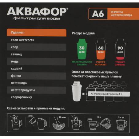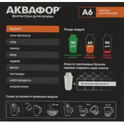 - Модуль А6 очищает водопроводную воду от вредных примесей и уменьшает образование накипи в чайнике, мультиварке и кофе-машине.