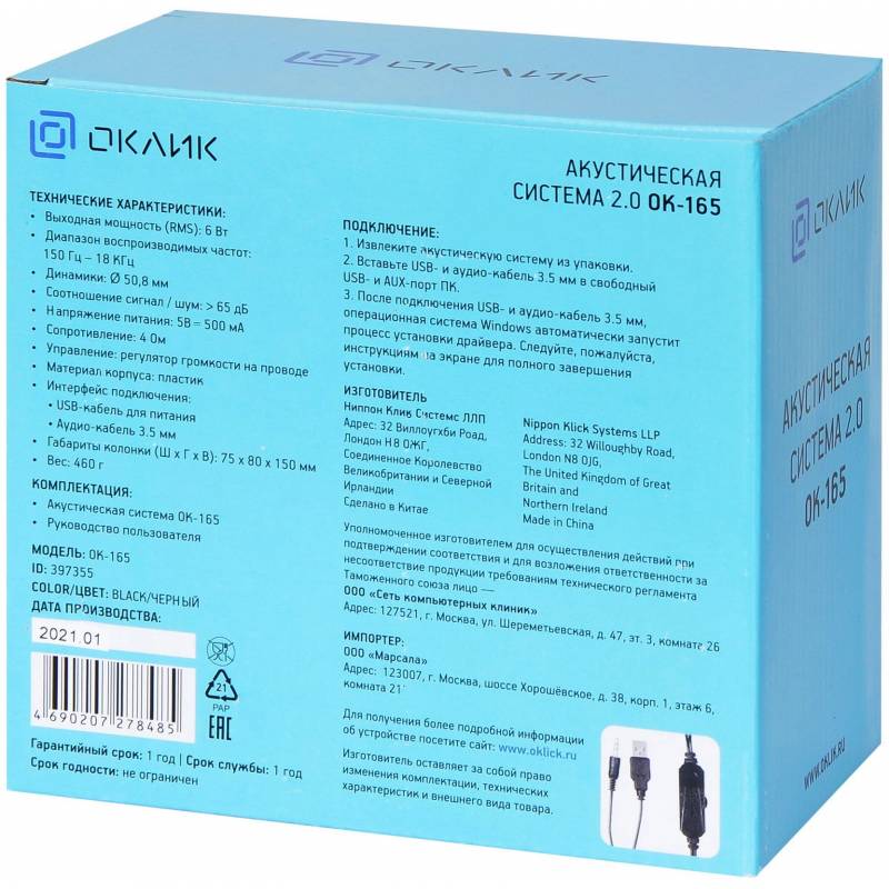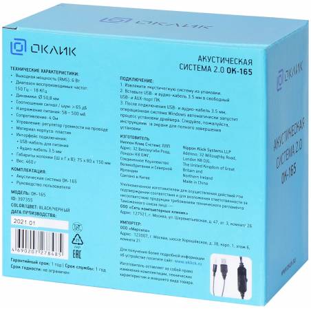 Колонки Оклик OK-165 2.0 черный 6Вт