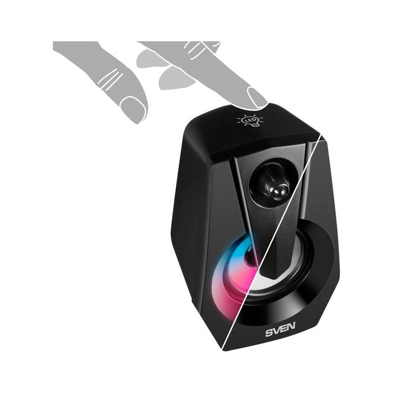 - Питание через порт USB. Поворотная ручка регулировки уровня громкости на передней панели. Динамическая отключаемая RGB подсветка. Сенсорная кнопка управления динамической RGB подсветкой.