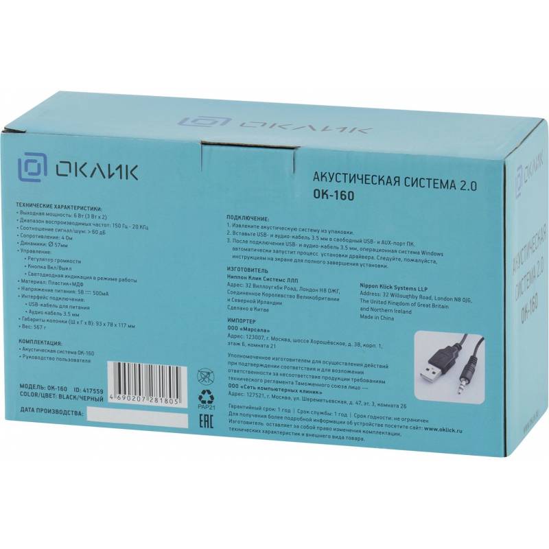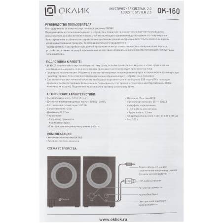 Колонки Оклик OK-160 2.0 черный 6Вт