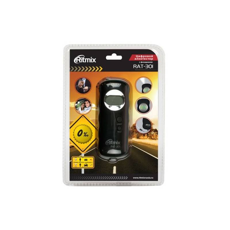 - Ritmix RAT-301 - это цифровой алкотестер со звуковым сигналом, который предназначен для проведения персонального измерения концентрации алкоголя в парах выдыхаемого воздуха. Прибор пересчитывает полученные данные на концентрацию алкоголя в крови и выдает