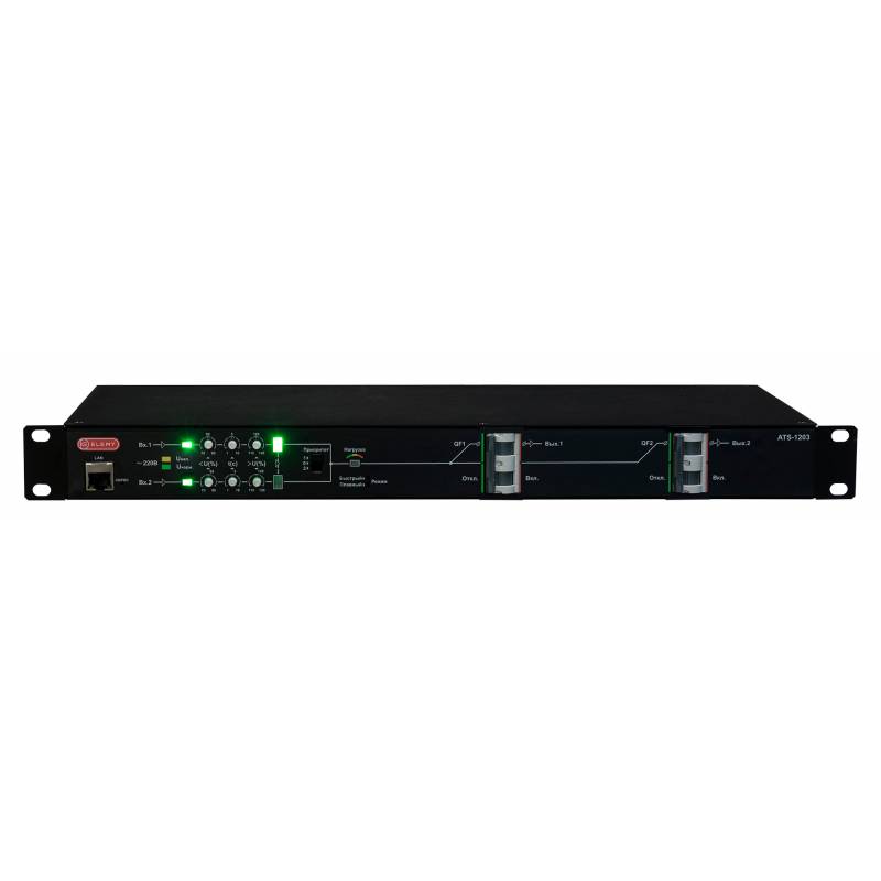 АВР Elemy ATS-1203/32/T/E/DO 1U 19" ввод:2xсилов. зажимн. клемма выход:2xсилов. зажимн. клемма32A черный