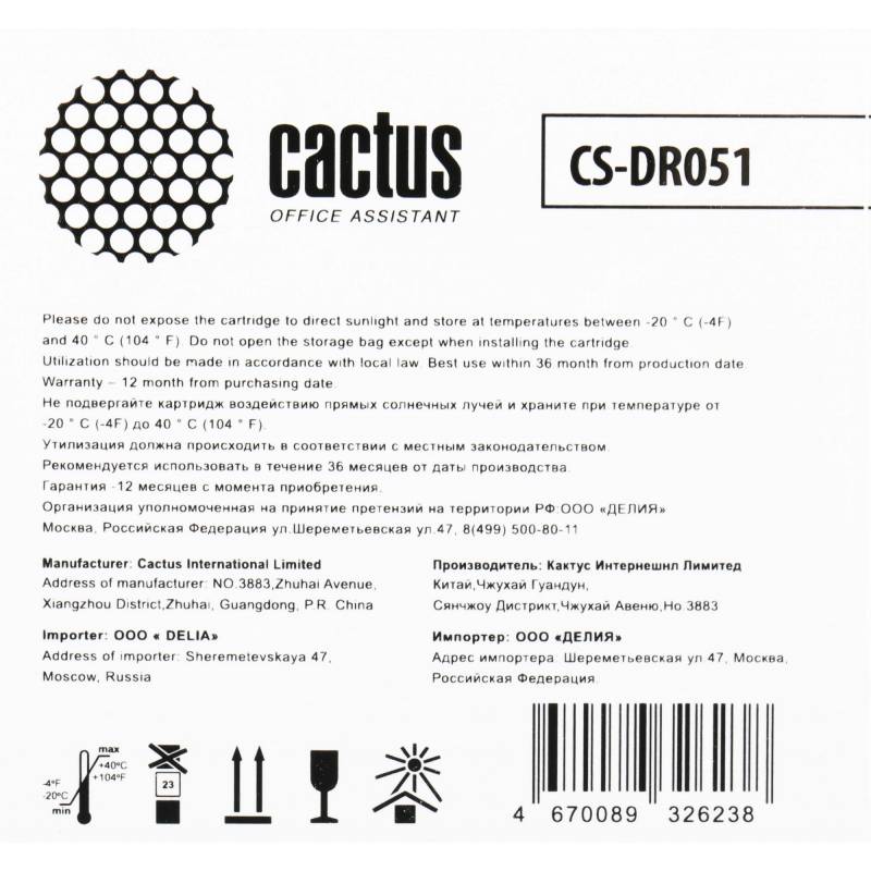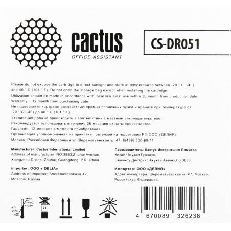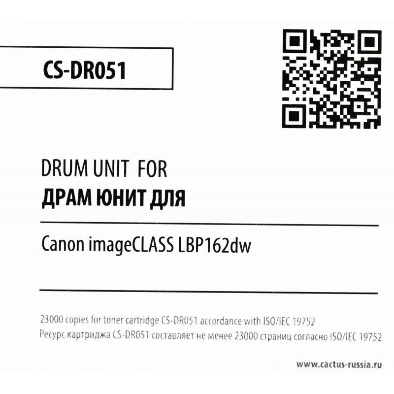 Блок фотобарабана Cactus CS-DR051 черный ч/б:23000стр. для LBP 162dw Canon