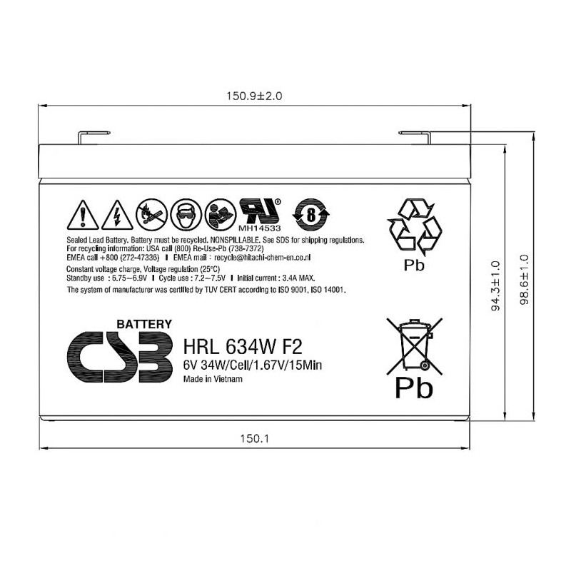 - Аккумулятор CSB HRL 634W F2 FR с высокой энергоемкостью. Особенная кристаллическая решетка электродов позволила увеличить на 20% отдаваемую мощность по сравнению с батареями других серий. Она разработана для эксплуатации в режиме высоких токов разряда при