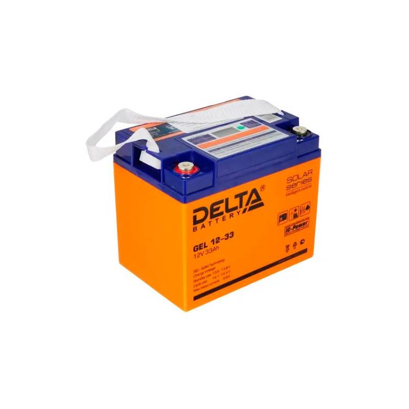 - Свинцово-кислотный аккумулятор Delta GEL 12-33 напряжением 12В и емкостью 33Ач изготовлен по технологии AGM+GEL: combined AGM and GEL technology (частичное сгущение электролита). Устойчив к глубоким разрядам.