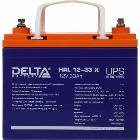 - Батареи DELTA серии HRL-X являются свинцово-кислотными, герметизированными, необслуживаемыми аккумуляторами с системой рекомбинации газов (VRLA). Произведены по технологии AGM (электролит, абсорбированный в стекловолоконном сепараторе).