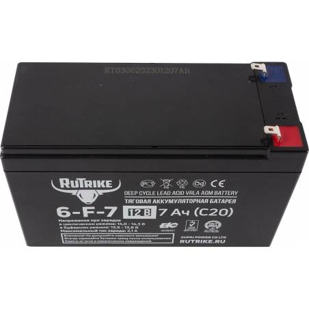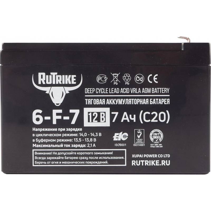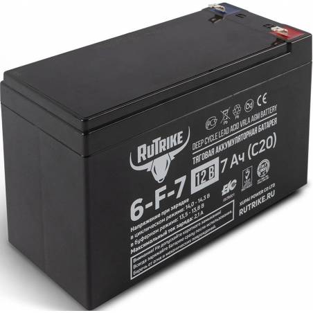 - Аккумуляторная батарея Rutrike 6-F-7 выполнена по технологии AGM и состоит из утолщённых свинцовых пластин и плотного слоя сепаратора между ними. Батарея не требуют обслуживания на протяжении всего цикла эксплуатации. Отлично подходит для работы в система