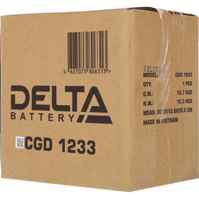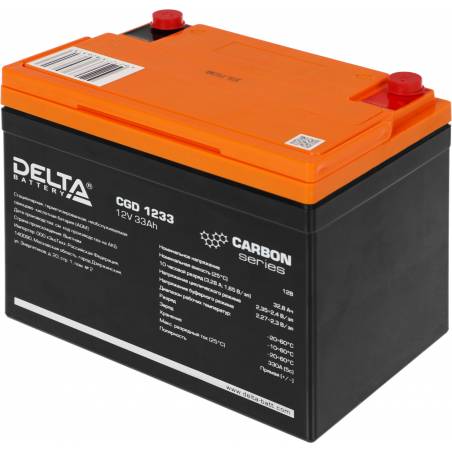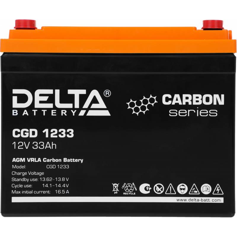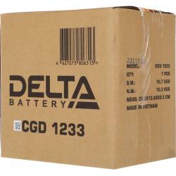 - Свинцово-кислотный аккумулятор Delta линейки CGD выпускается с напряжением 12 В и ёмкостью 33 Ач. В основе лежит технология AGM, жидкий электролит удерживается внутри стекловолоконных сепараторов неподвижно.