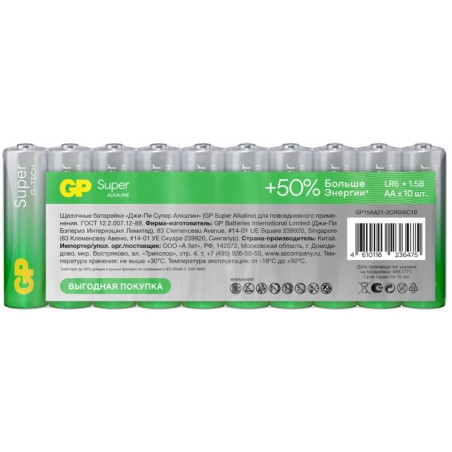 Батарея GP Super Alkaline 15AA21-2CRSWC10 AA (10шт) спайка