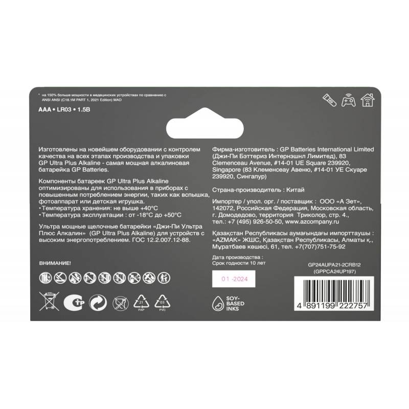 Батарея GP Ultra Plus Alkaline 24AUPA21-2CRB12 AAA (12шт) блистер