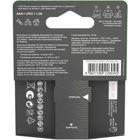 Батарея GP Ultra Plus Alkaline 24AUPA21-2CRSB2 AAA (2шт) блистер