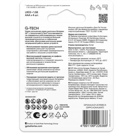 Батарея GP Ultra Alkaline 24AUA21-2CRSBC4 AAA (4шт) блистер