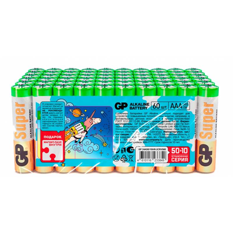 Батарея GP Super Alkaline 24A50/10SMF-2CRVS60 AAA (промо:50+10) (60шт) спайка