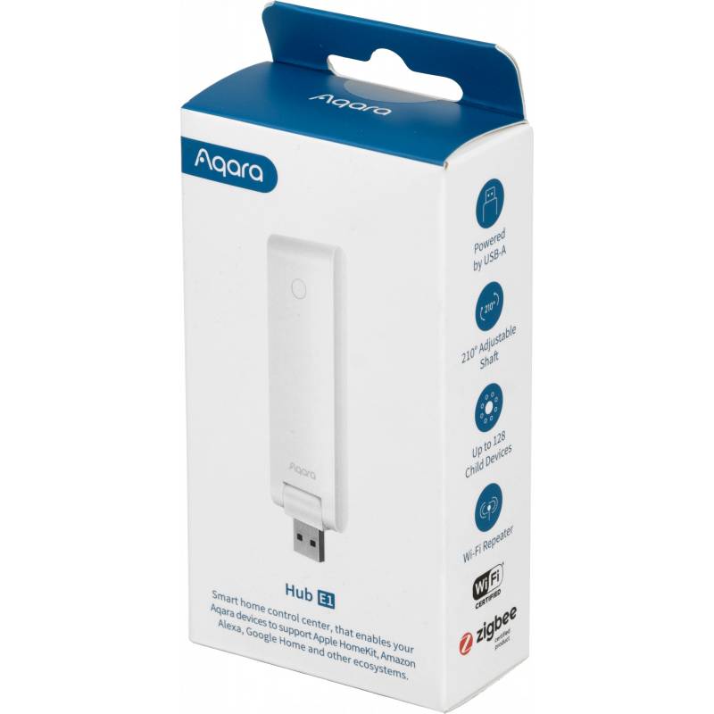 - Самый компактный, но не уступающий по возможностям другим центр умного дома Aqara. Для подключения можно использовать любой USB-A разъём.