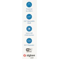 - Хаб работает на протоколе Zigbee 3.0 и может выступать в роли повторителя Wi-Fi сигнала.