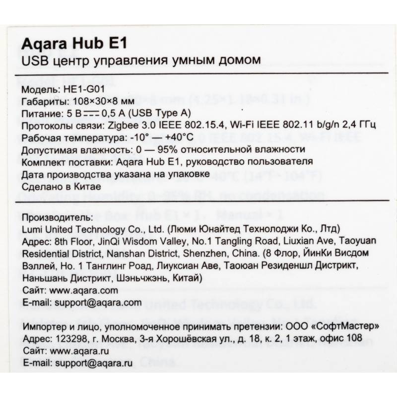 - Наличие Wi-Fi 2.4 ГГц, мобильное приложение Aqara Home