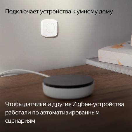 - Хаб работает на протоколе Zigbee 3.0 и может выступать в роли пульта